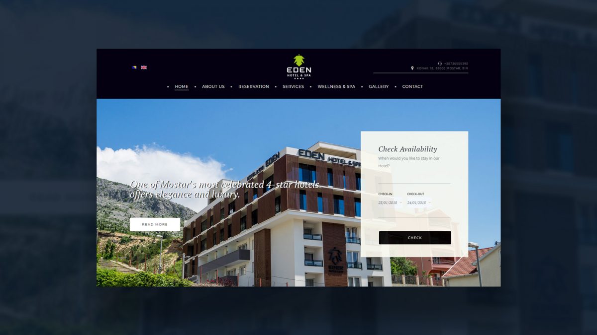 Hotel EDEN **** je hotel sa predivnim panoramskim pogledom na grad Mostar. Svojim gostima pruža luksuzan smještaj. Gosti mogu rezervisati jednu (više) od 53 ponuđene sobe.