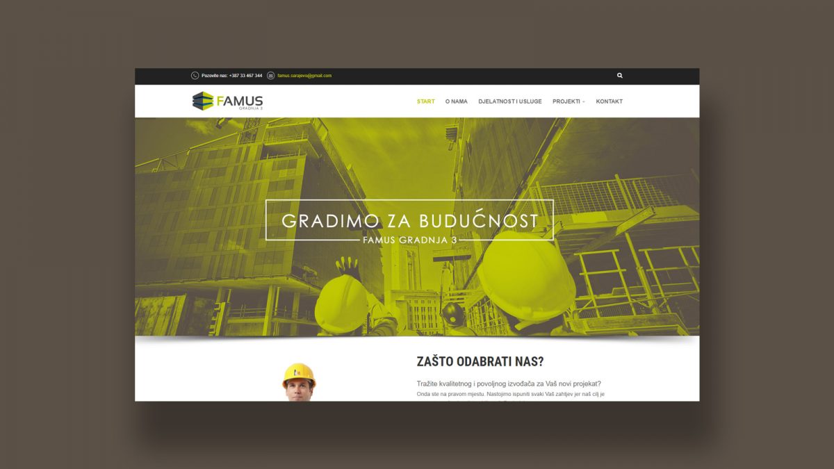 Građevinska firma “FAMUS-GRADNJA 3” d.o.o. osnovana je 01.01.2002. godine sa sjedištem u ulici Kralja Tvrtka bb, Tešanj, te od 30.07.2003. god. i u Sarajevu u ulici Braće Mulić br. 1.